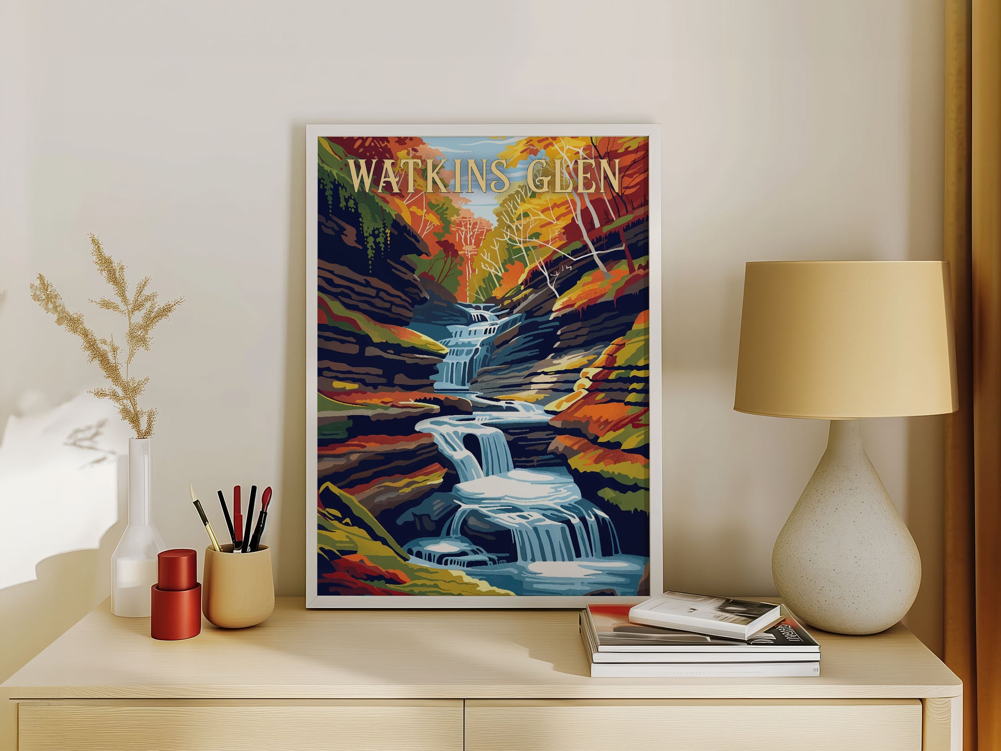 Whether it is a memory of a wonderful trip, a destination on your bucket list or a fond look back at your childhood home, you will love this poster of Watkins Glen, New York.